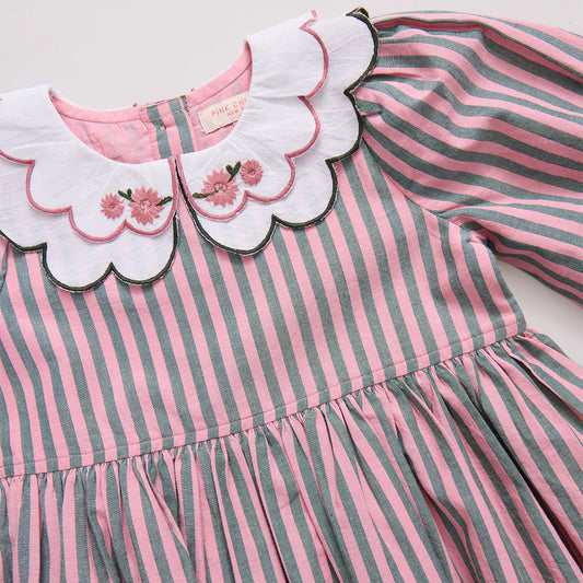 Darcy Dress- Pink Green Stripe